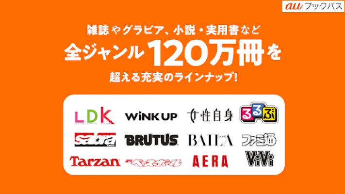 auブックパスは、au提供の電子書籍サービスです。人気コミック、小説、雑誌など120万冊以上の豊富なラインナップが魅力。読み放題プランもあり、au以外の方も楽しめます。