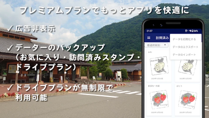 訪れた道の駅での思い出は、アプリ内にしっかりと記録。「道の駅 - 日本全国道の駅めぐり」では、チェックインスタンプを集める新機能で、旅の足跡を目に見える形で残せます(都道府県別スタンプは現在制作中)。さらに、各道の駅への口コミ投稿機能を通じて、他のユーザーと感動や情報を共有し、より深い道の駅体験を提供します。プレミアムプランへ移行すれば、広告なしの快適な環境に加え、作成できるドライブプラン数が無制限に。大切なデータのインポート・エクスポートも可能になり、あなたの道の駅巡りをさらに豊かなものにするでしょう。