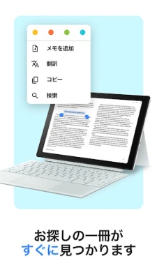 あなたの読書スタイルに合わせてGoogle Play ブックスを自由にカスタマイズしてください。フォントの種類や文字サイズ、画面の明るさまで、最適な読書環境を細かく調整できます。読んだ書籍は、ジャンルや著者、テーマ別に整理できるカスタム本棚で、あなただけの理想的なデジタルライブラリを構築。さらに、読書中に浮かんだアイデアや重要な箇所はスマートメモ機能で記録し、Google ドライブと同期すれば、共有や共同編集も簡単。コミックやマンガには「ふきだしズーム」が用意されており、臨場感あふれるビジュアルストーリーを存分に堪能できます。