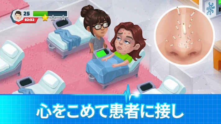 病院を舞台に、「健康こそが最大の富」をモットーとした時間管理ゲーム『ハッピークリニック』。患者を治療し、病院を経営しながら、あなたの時間管理能力が試されます。やりがいと楽しさが満載です。